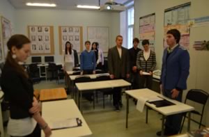 Учитель физики. Сегодня у нас необычное мероприятие (необычный урок). Он необычен своей формой и еще тем, что проводится накануне годовщины крупнейшей катастрофы века XX столетия - аварии на атомной электростанции «Фукусима 1». Ещё после чернобыльской трагедии человек понял, на сколько «коварна» и опасна ядерная энергия, что она может не только служить людям источником энергии, но и нести им разрушения и беды. Сегодня мы будем судить Ядерную Энергию. Судить за то, что она принесла людям страшные страдания, лишения, смерть; вспомним взрывы атомной бомбы в Хиросиме и Нагасаки в 1945 году, наземные взрывы в штате Нью-Мексико и Семипалатинской области, взрывы на атомных подводных лодках. Перед тем, как начать нам процесс, предлагаю почтить память всех, пострадавших от ядерной энергии, минутой молчания. (Все встают, через минуту садятся).